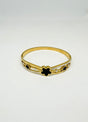 This stainless steel bangle offers timeless elegance and lasting durability. The black floral accents paired with the gold-tone base create a sophisticated contrast, while the crystal embellishments add a touch of sparkle, making it a versatile accessory for any wardrobe.