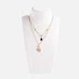 This elegant double-layered necklace features a delicate rose gold design with a minimalist pendant and a subtle black teardrop charm. The layered chains create a sophisticated look, making it an ideal piece for layering or wearing solo for a refined, chic style.