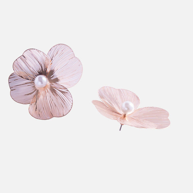 Product Overview: These stunning statement earrings are crafted in a delicate floral shape with a radiant gold finish. The intricate petal details and the faux pearl center give them a fresh, elegant look. These earrings are lightweight yet bold, making them the perfect accessory to elevate any outfit.