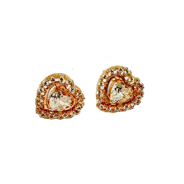 Heart-Shaped Crystal Stud Earrings with Rose Gold Finish