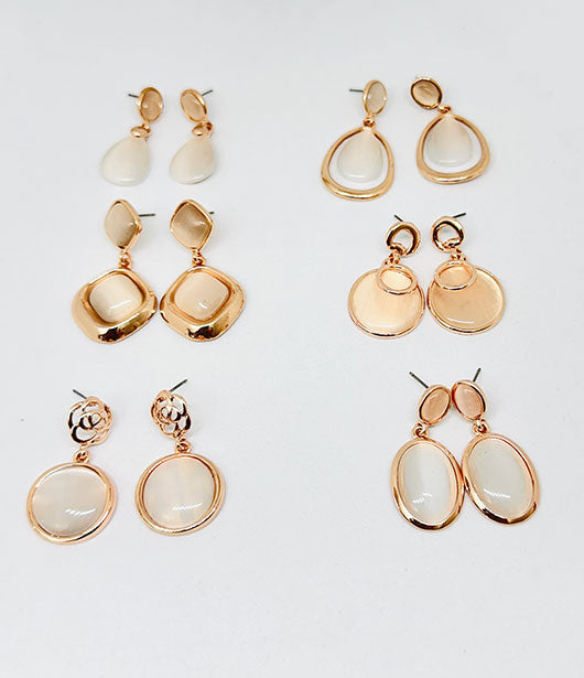 Elegant Gold and White Dangle Earring Set [PAIR OF 6 ]