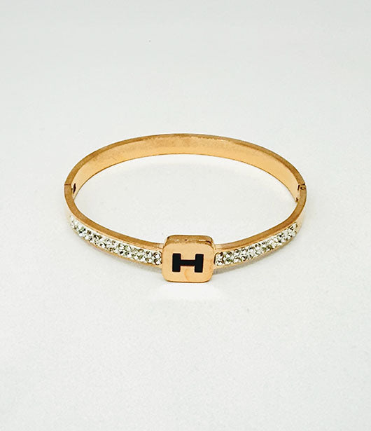 Product Overview: This stunning bracelet combines modern design with a hint of sparkle. Made from high-quality stainless steel, it features a bold monogram "H" centerpiece and is adorned with delicate crystals along the band, adding a luxurious touch to any ensemble.
