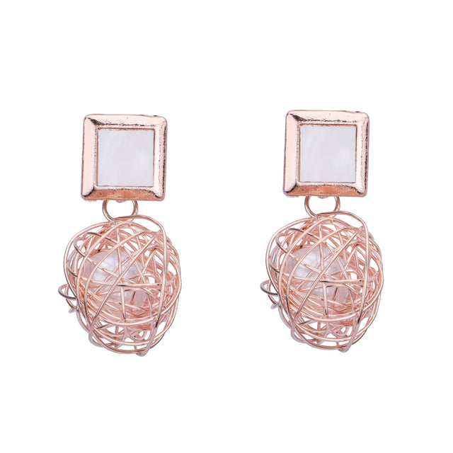 Product Overview: These unique earrings feature a minimalist square stud with a suspended wire sphere, creating an intriguing and artistic design. The open wirework sphere adds dimension and flair, making these earrings a perfect accessory for those who love distinctive and modern pieces.