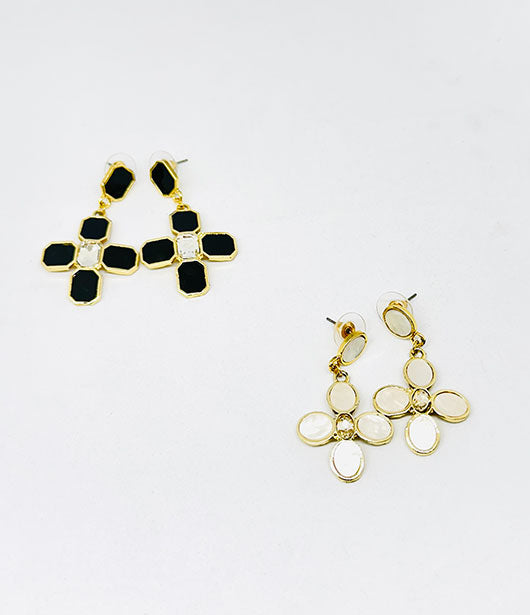This exquisite set of geometric drop earrings is designed to make a bold statement. Featuring both black and white options, these earrings showcase a unique geometric pattern that adds a modern edge to any outfit.
