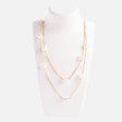 This modern double-layer necklace features an array of large geometric beads strung on delicate gold chains. Its minimalist design with bold accents makes it a versatile piece that adds a touch of contemporary elegance to any outfit.