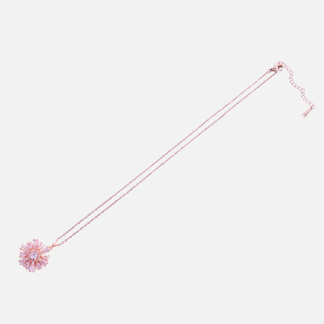The intricate floral design of the pendant combined with the elegant rose gold finish makes this Chain Pendant a standout piece. Its versatility allows it to be worn with both formal and casual outfits, making it a must-have addition to your jewelry collection.