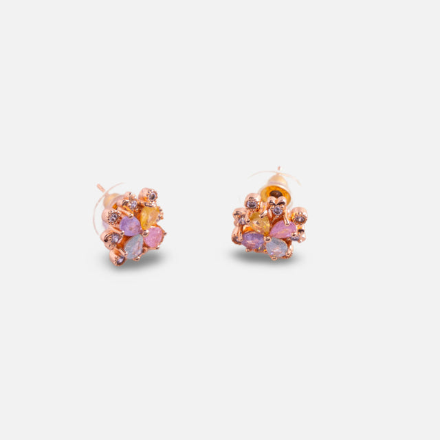Rose Gold Multicolor Floral Stud Earrings