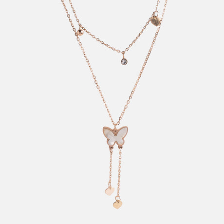 Rose Gold Butterfly Pendant Necklace with Dual Chains