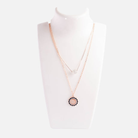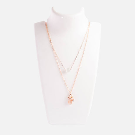 Rose Gold Double Layer Floral and Teardrop Necklace
