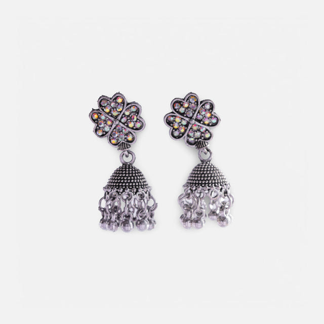 These floral charm jhumka earrings are a beautiful fusion of nature-inspired design and classic jhumka style. With their delicate floral stud and elegant jhumka, they are perfect for adding a subtle yet sophisticated touch to any outfit.