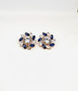 Add a vibrant touch of elegance with these stunning blue and clear gemstone stud earrings. Designed to resemble a blooming flower, these earrings feature a captivating arrangement of marquise-cut blue and clear stones around a central sparkling gem, making them the perfect accessory for both day and night occasions.