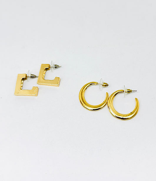 Geometric and Crescent Hoop Earring Set [PAIR OF 2]