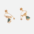 An extraordinary piece of jewellery, this statement earring features an artistic fish motif paired with a raw green gemstone. Highlighted by a floral accent and a heart detail, this design embodies elegance and creativity, making it perfect for unique style expressions.