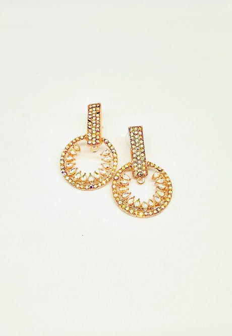 Radiant Gold-Toned Crystal Circle Drop Earrings