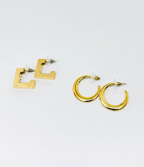 Geometric and Crescent Hoop Earring Set [PAIR OF 2]