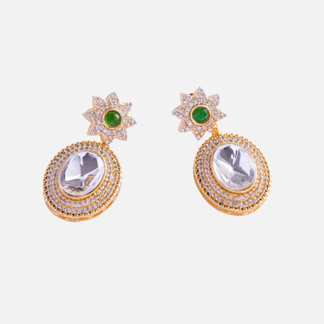 Gold-Tone Oval Crystal and Green Gemstone Earrings